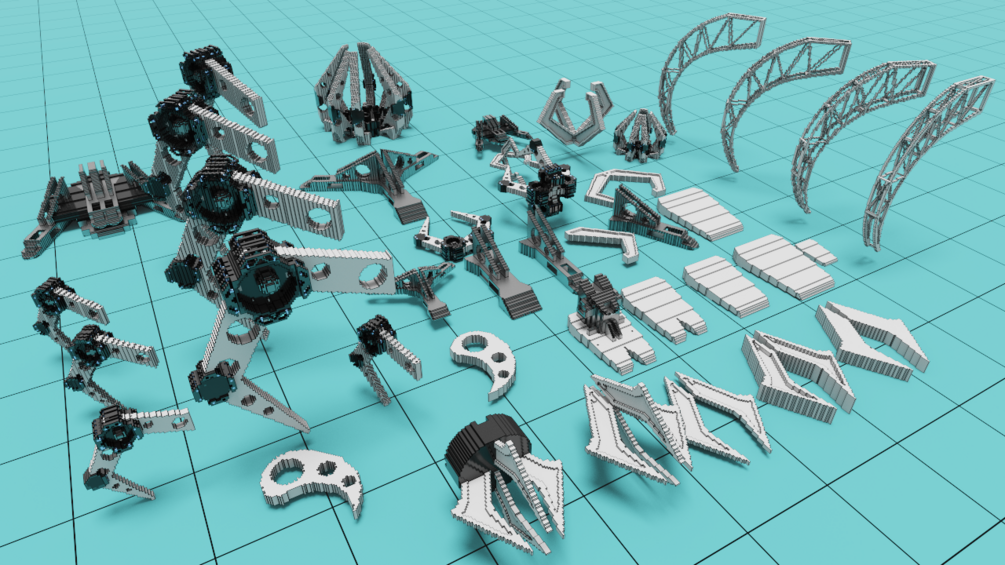This is my MagicaVoxel Battle-Robot KitBash set containing total 432 pieces to manipulate and help construct complex voxel Battle-Robots quickly and easily